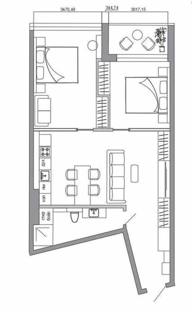 Планування з великими панорамними вікнами, кухня-студія, дві окремі спальні одна з яких з виходом на лоджію. Стан квартири від будівельників- заведені всі комунікації, лічильники, стяжка, металопластикові енергозберігаючі вікна, опалення, надійні вхідні броньовані двері.