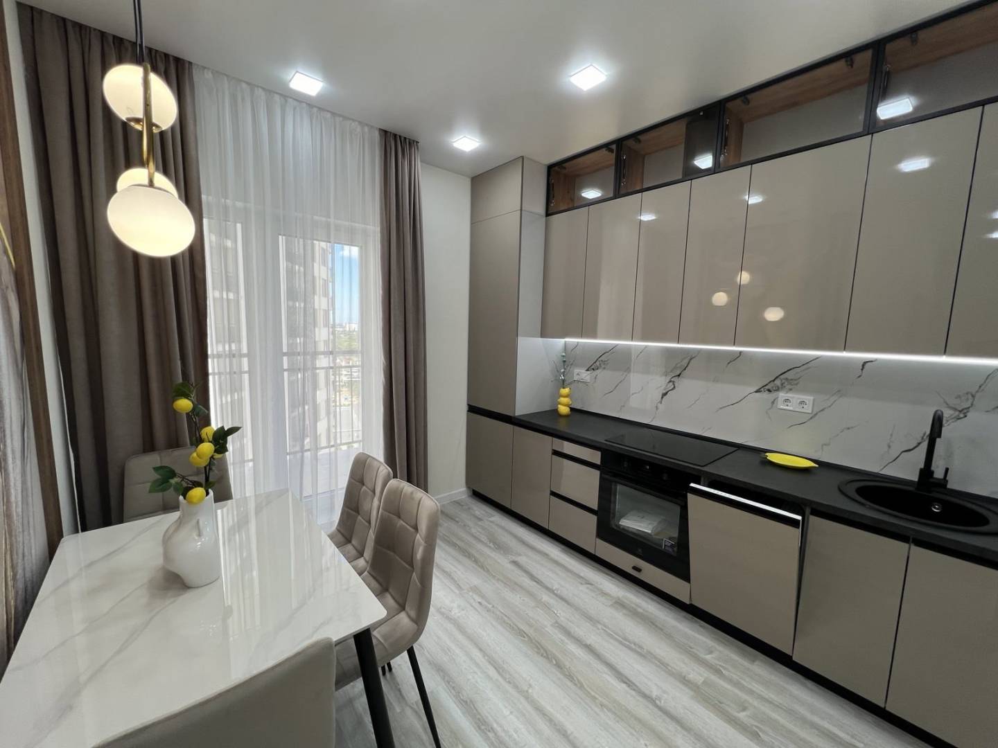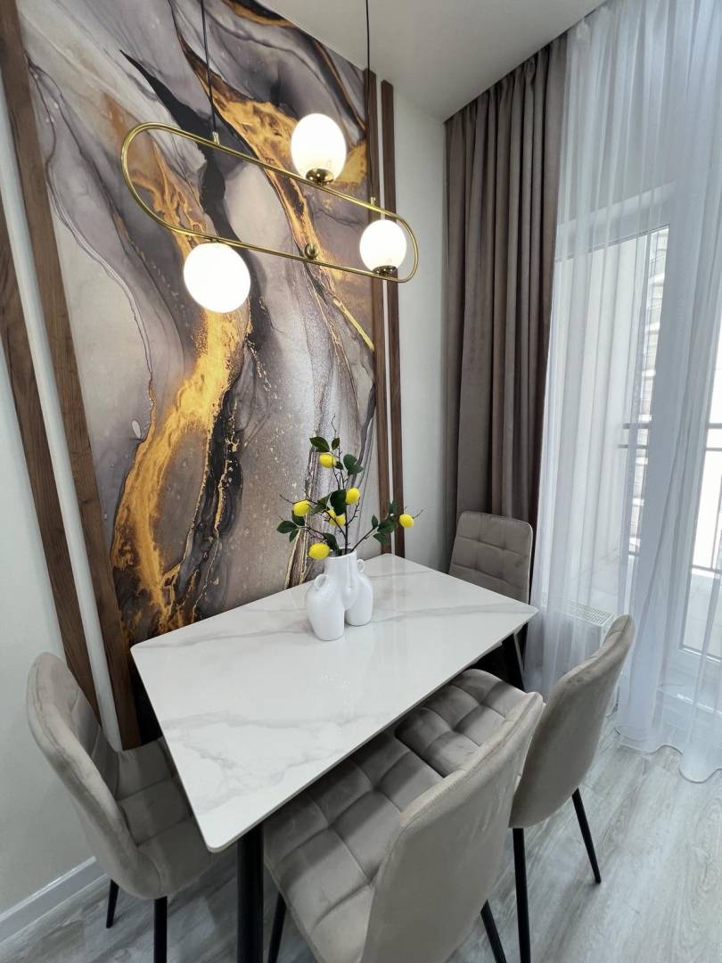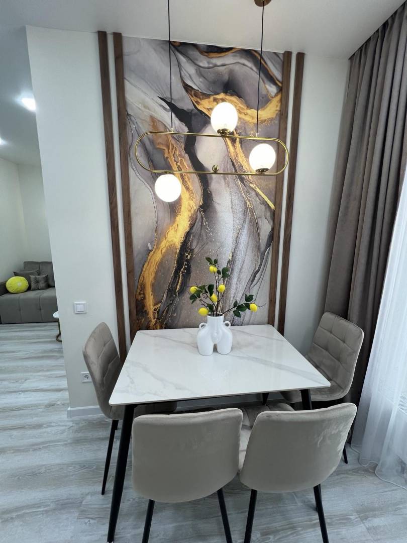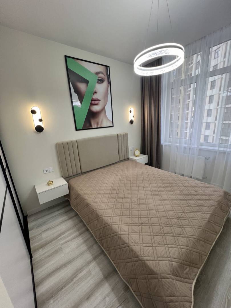 Пропонується до продажу однокімнатна квартира в новому житловому комплексі. Загальна площа 43 кв.м розташована на середньому поверсі. У квартирі виконаний якісний, сучасний ремонт із дорогих матеріалів. Відмінне планування, велика кухня-студія та кімната. Квартира повністю укомплектована меблями та технікою. Упорядкована територія, поряд все необхідне.